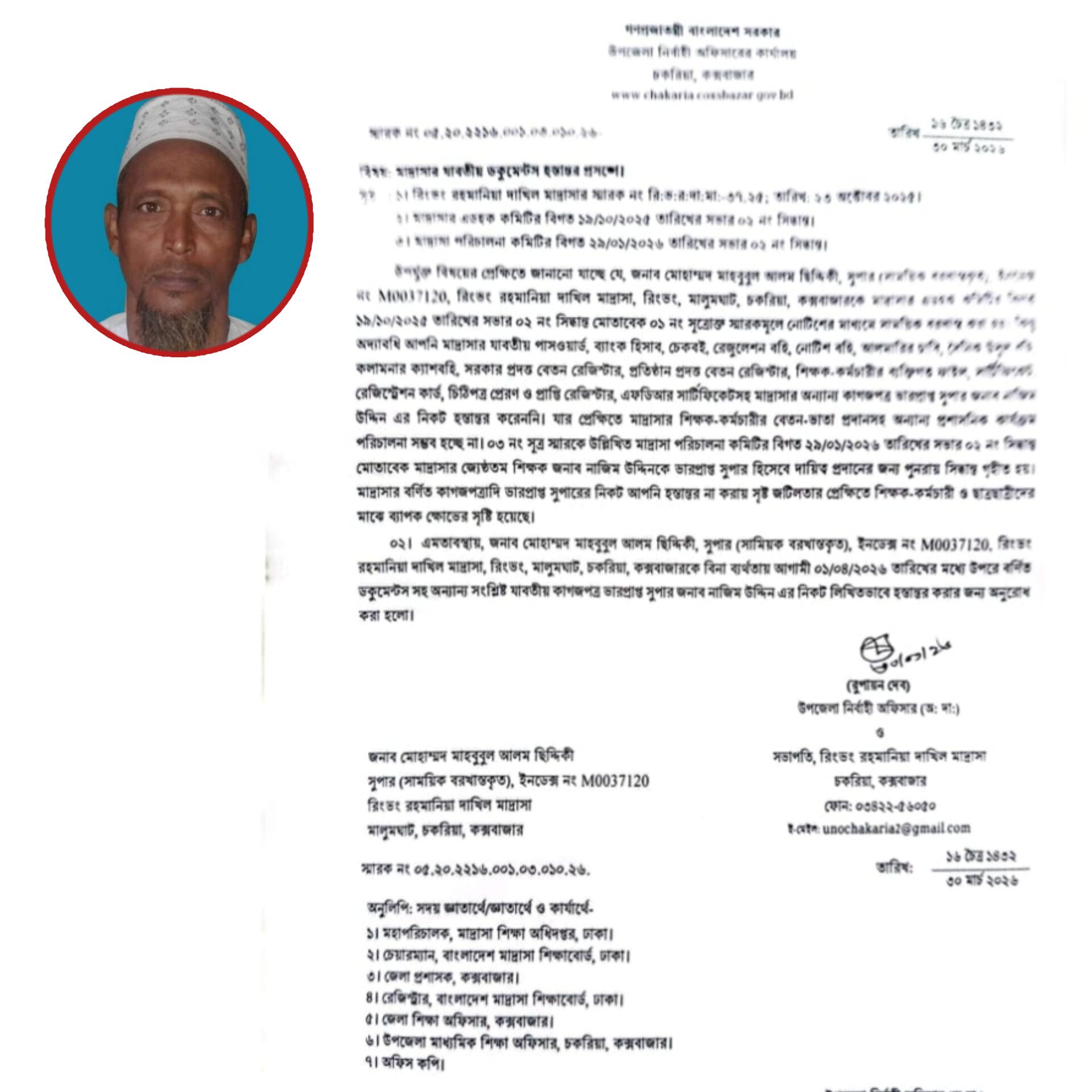 রহমানিয়া দাখিল মাদ্রাসার সুপার সাময়িক বরখাস্ত